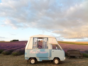 Ice Baby was created in 2006, when she was sold by her previous owner, an ice cream man in The Lake District, who had decided to retire. She made the 250 mile journey down south intact, and we gradually gave her a small facelift including a respray, some interior tweaking, and a lovely new set of signage. The van was in use during its makeover, attending a variety of events, including a launch party for Boodles the jewellers, Rhythms of the World music festival and numerous weddings, birthday parties and summer fairs.